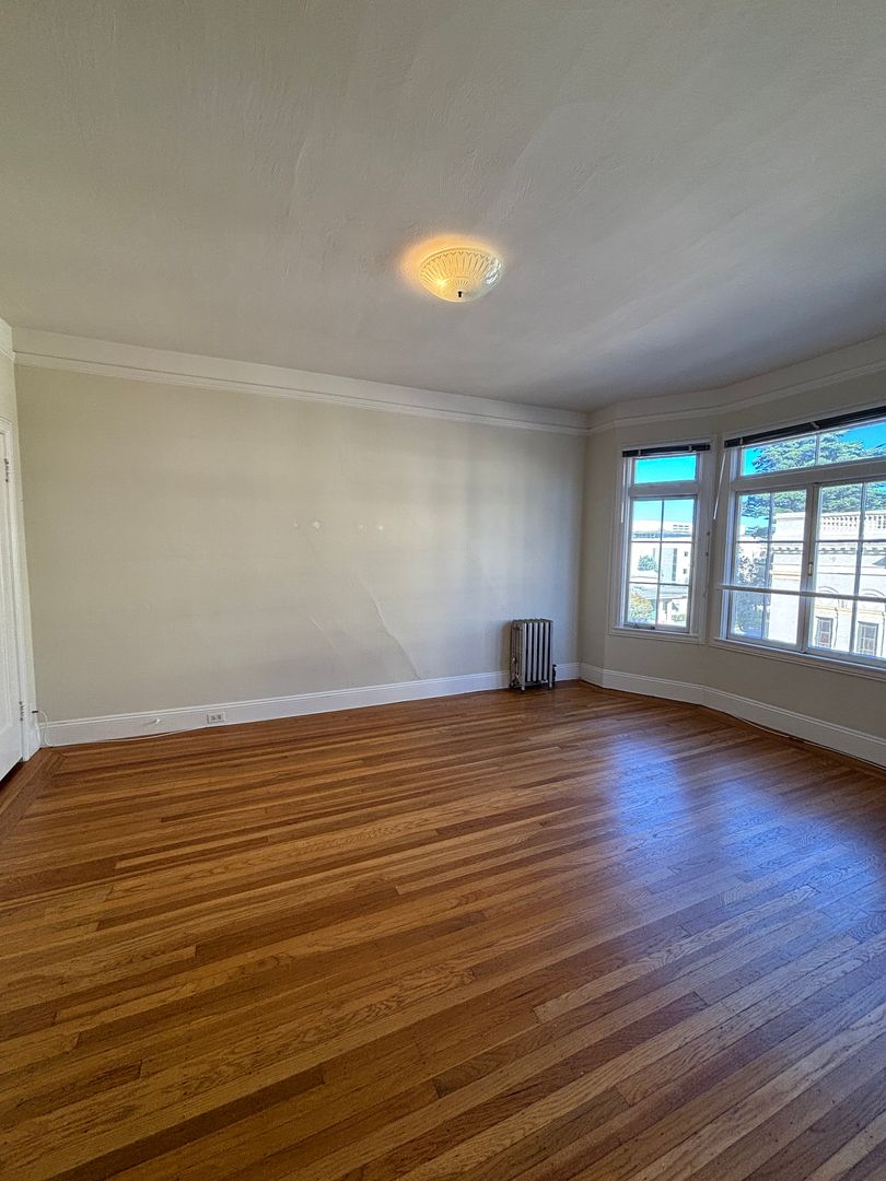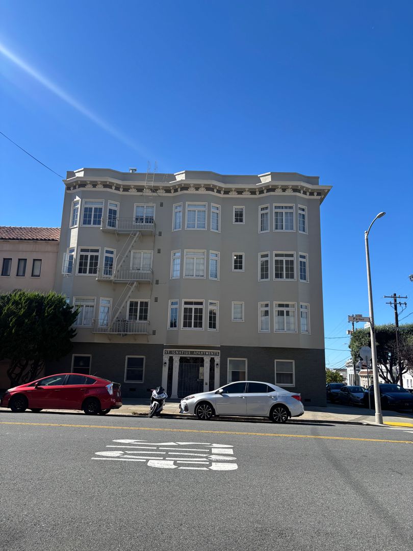 Bright studio near USF/Panhandle. This unit is located at the corner of Parker Street at McAllister Street. Unit has updated appliances, hardwood floors throughout, and plenty of storage. It is close to Golden Gate Park, USF campus, Haight St and public transportation.